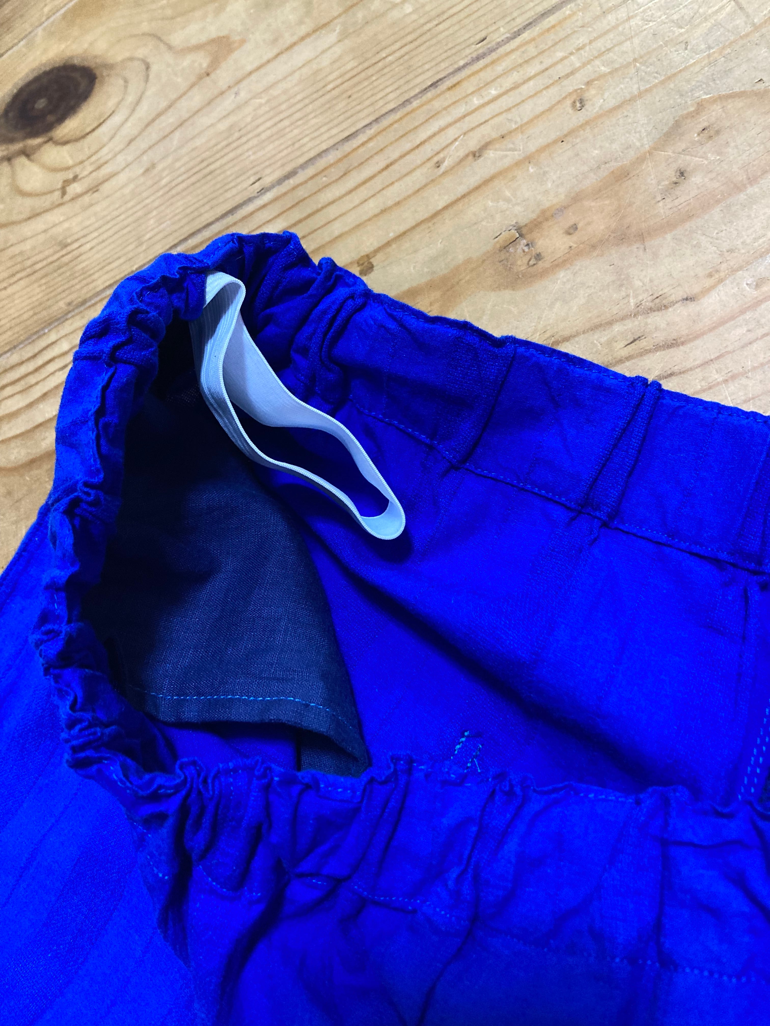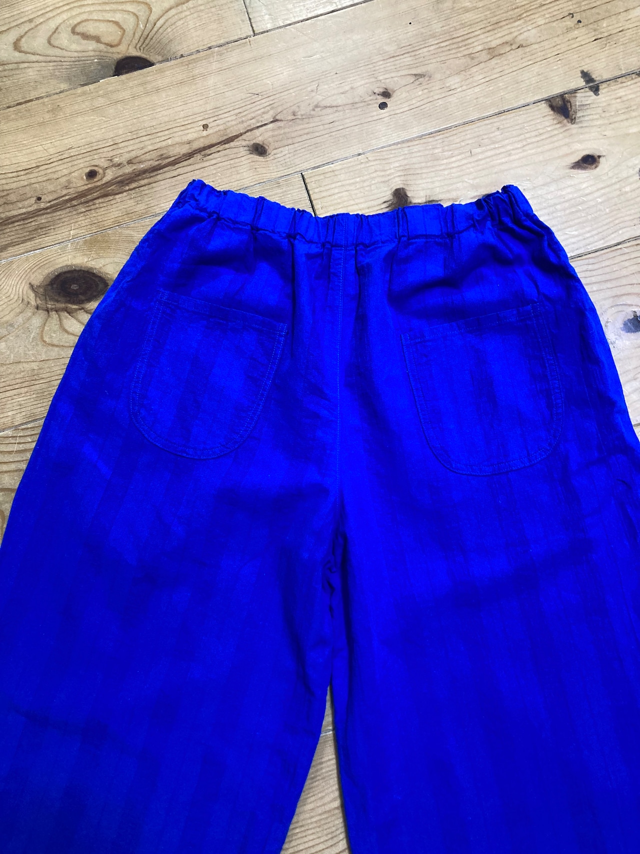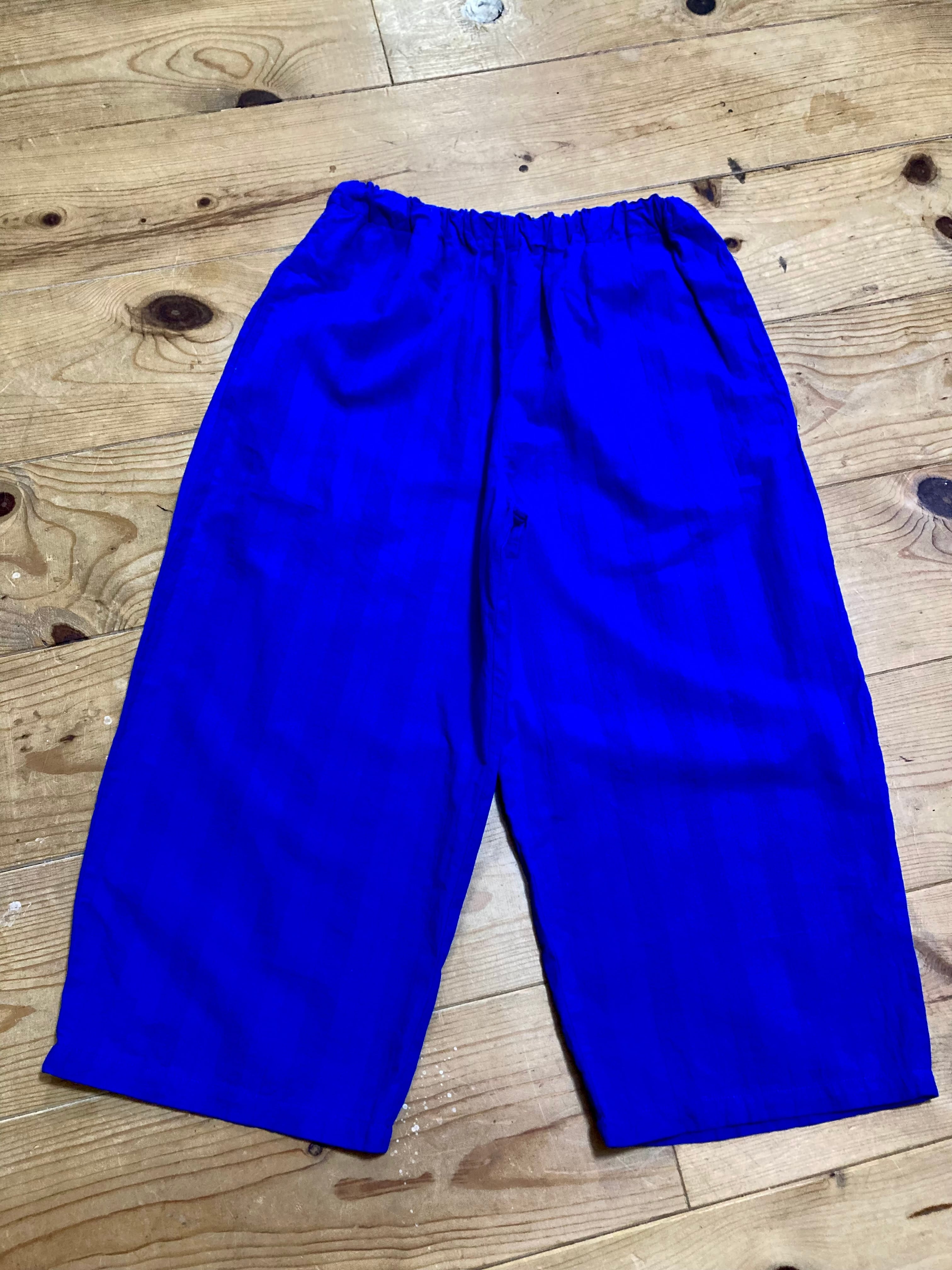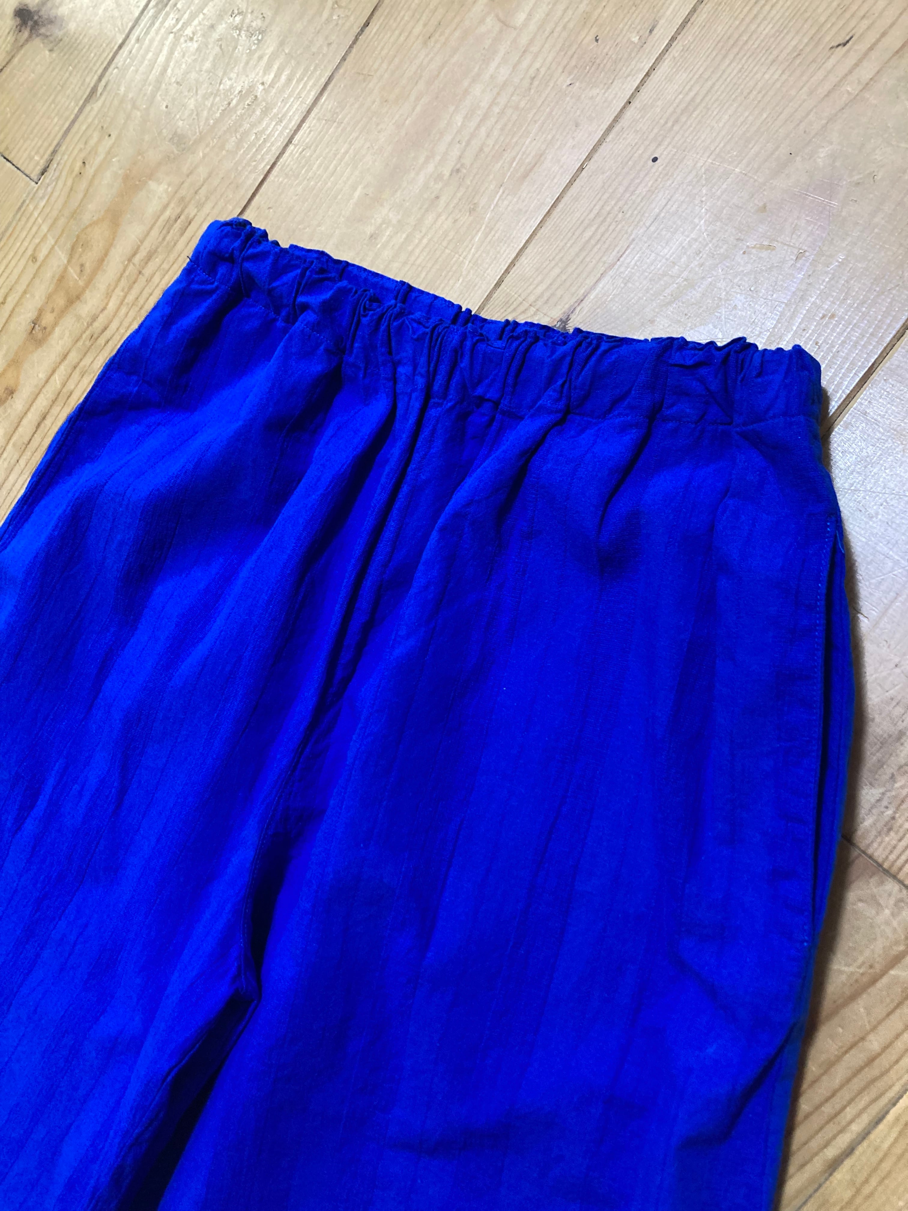 涼しげな色合いが魅力の美しい青色のこのパンツは、夏のお出かけに最適です。