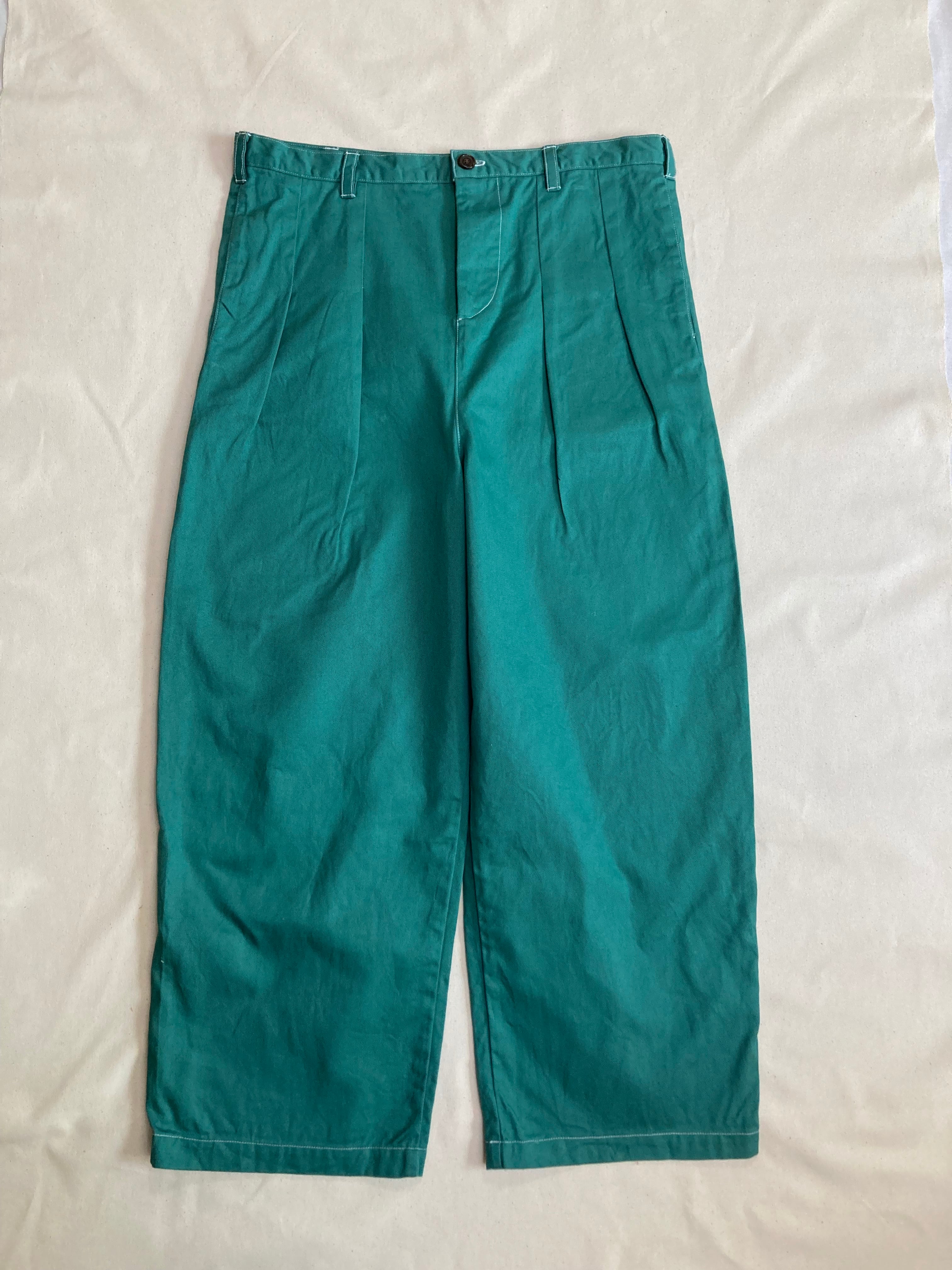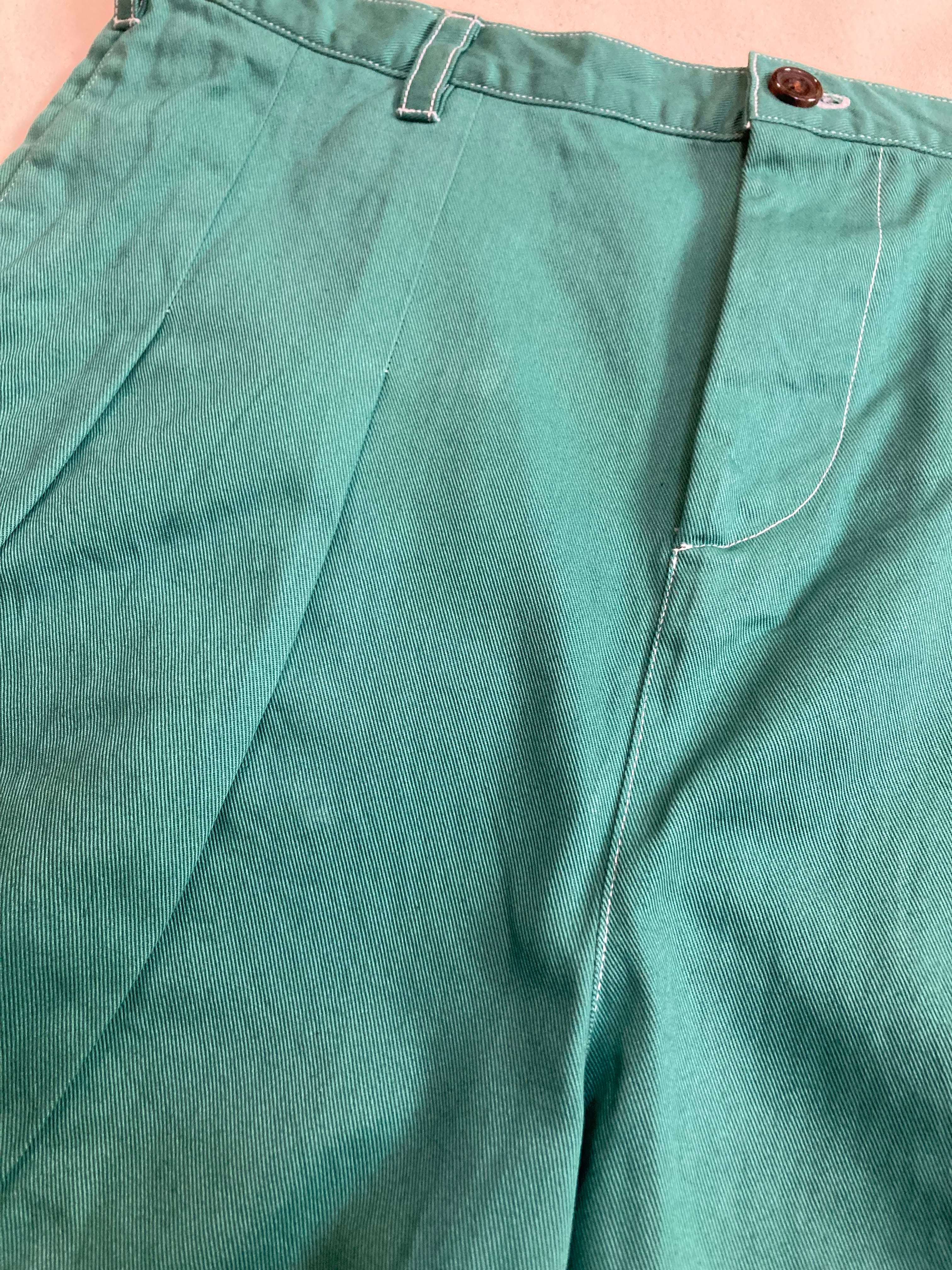 グリーンが綺麗なハンドメイドのチノパンツです。