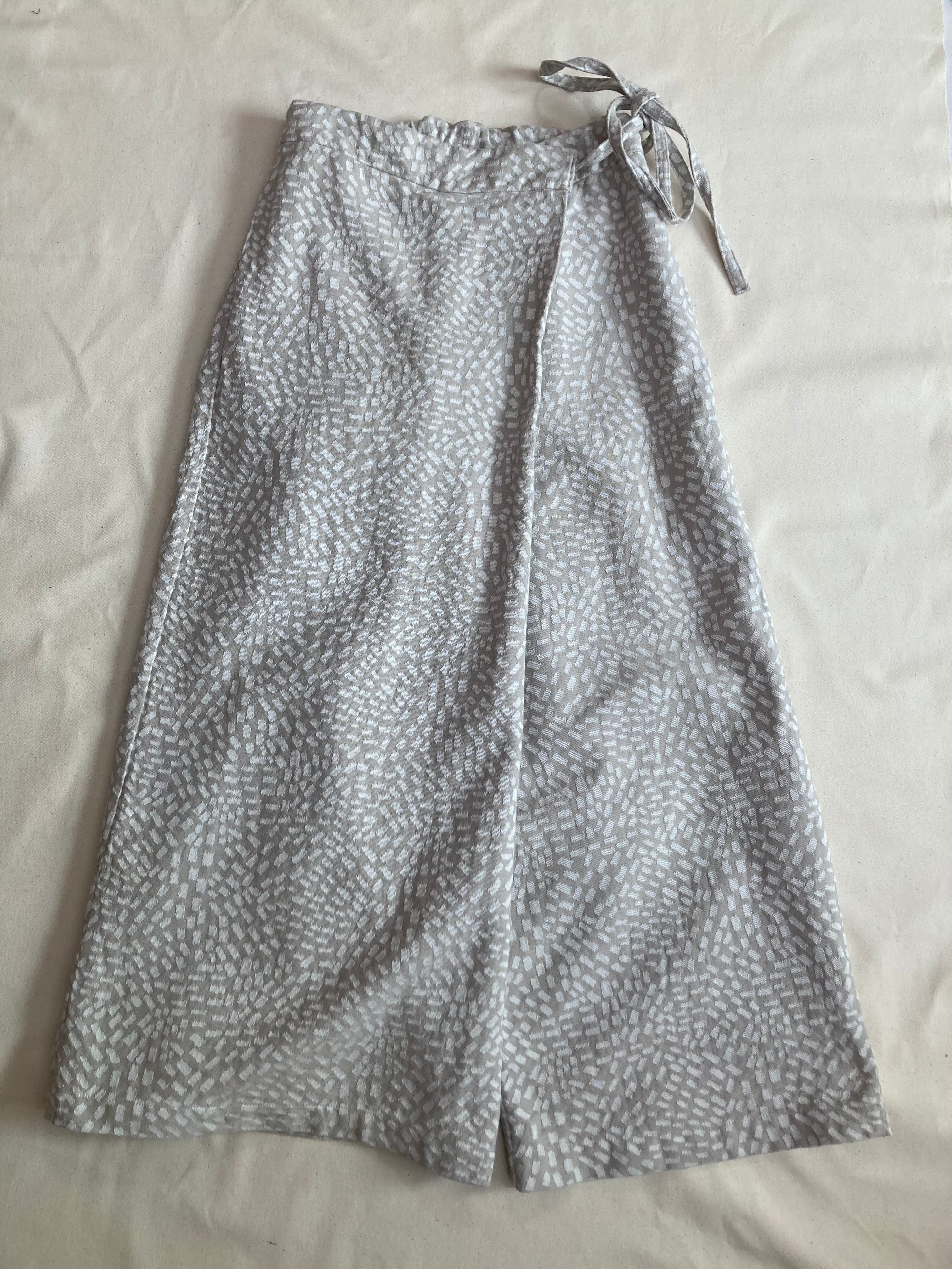インド綿を使用した、巻きスカート風のワイドパンツです。