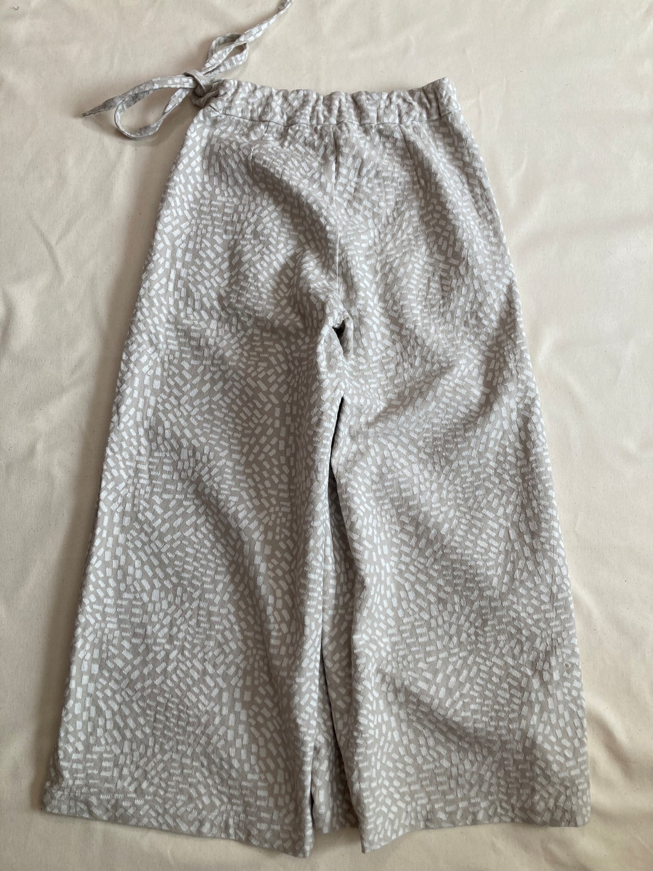 前から見ると巻きスカート、後ろ姿はワイドパンツです。