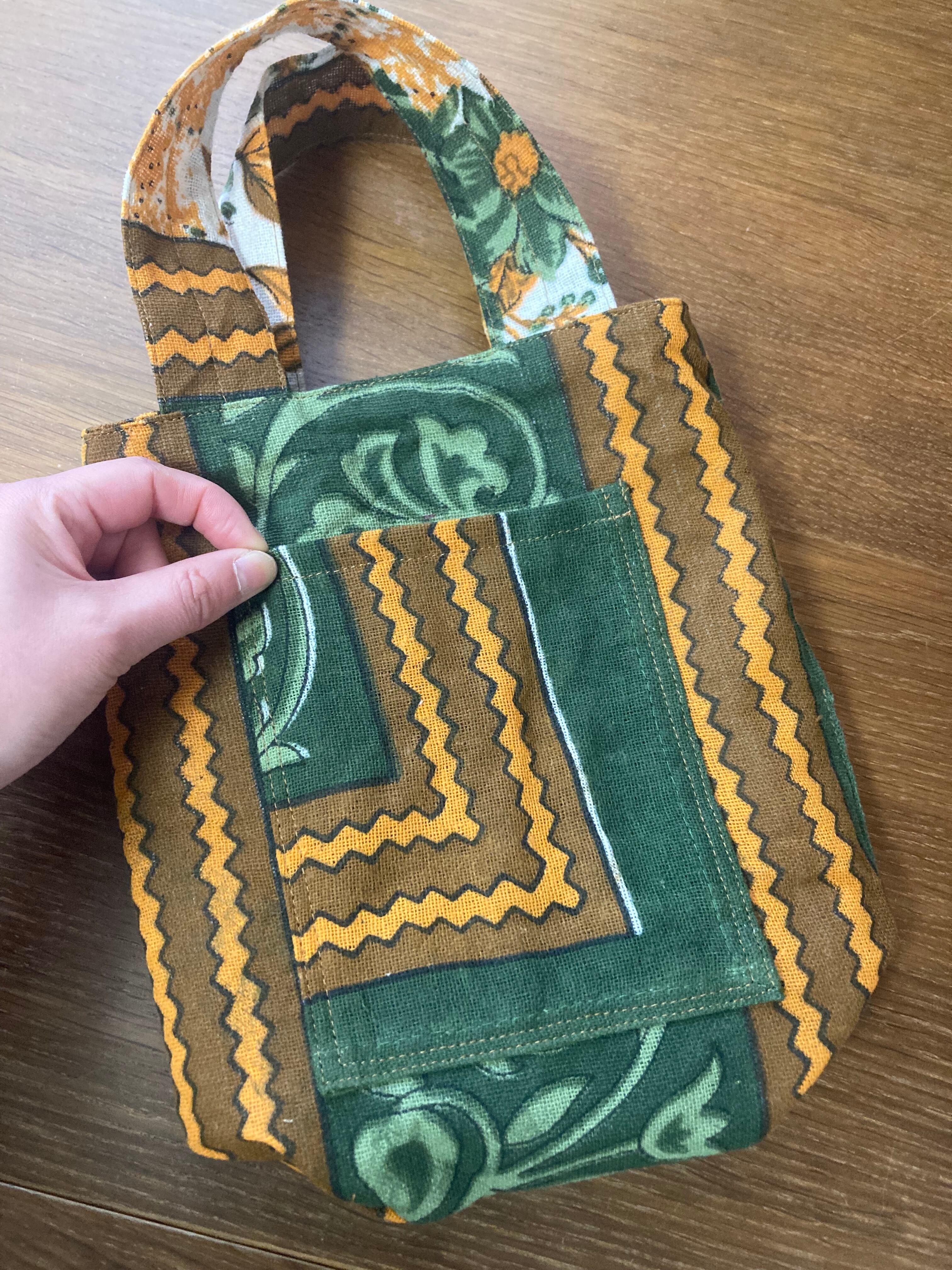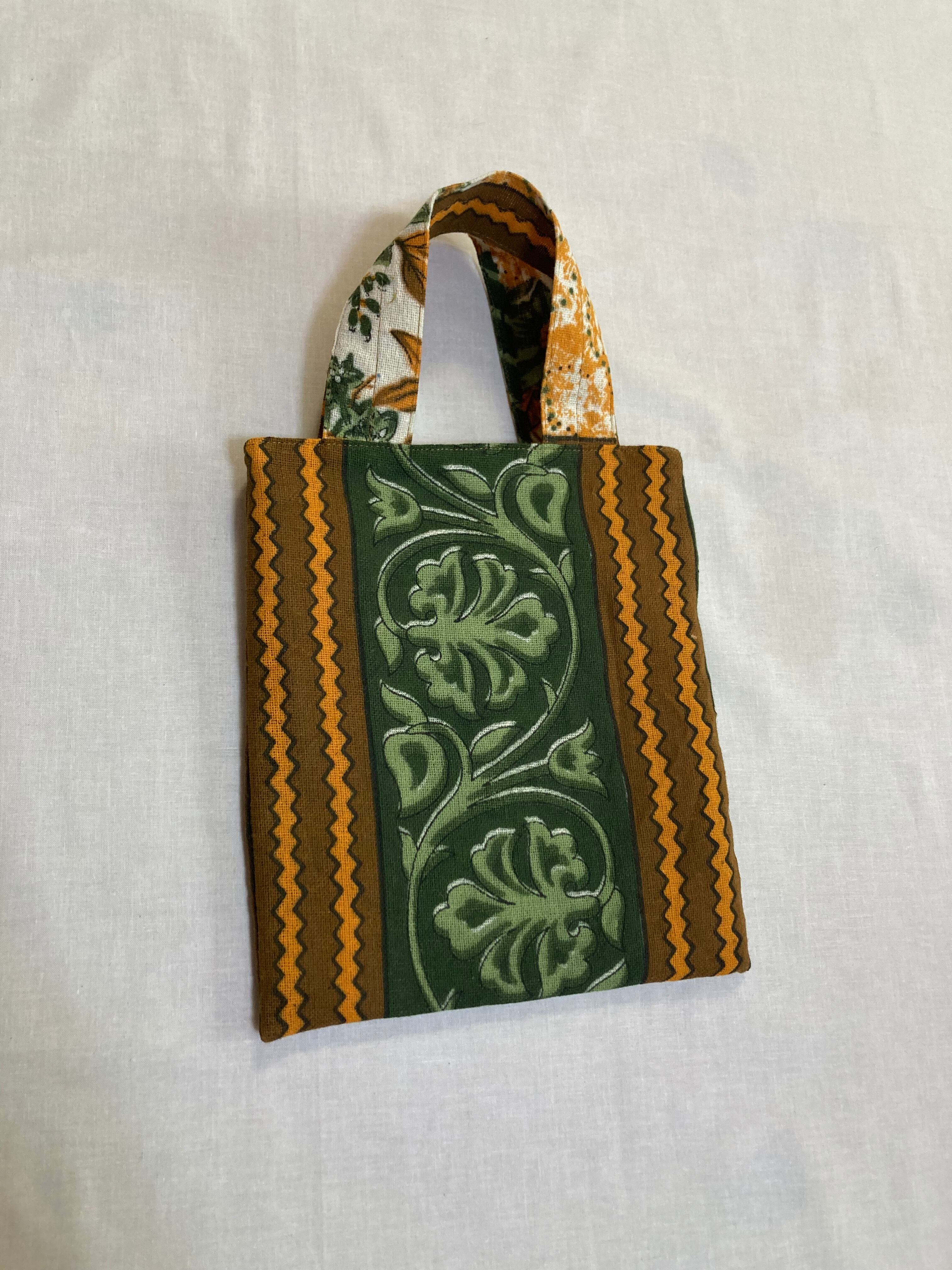 インド綿 トートバッグ 緑・黄色系